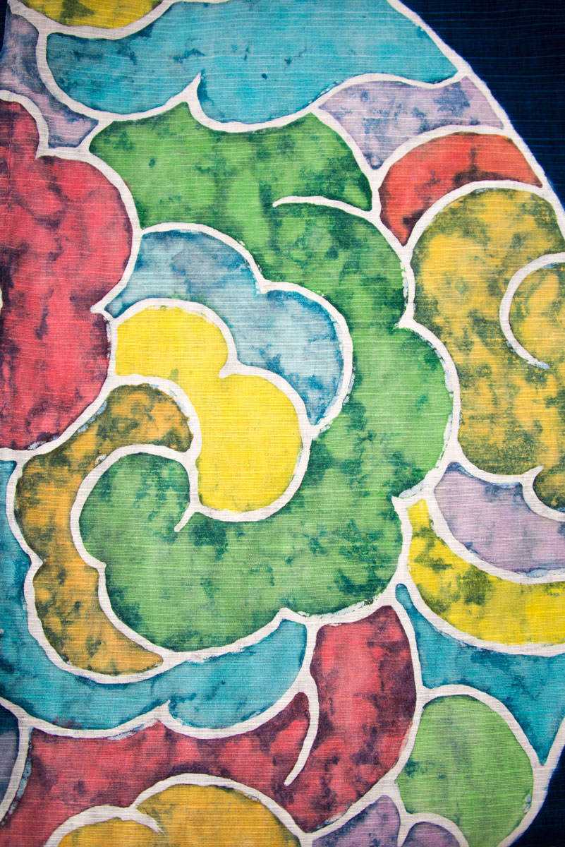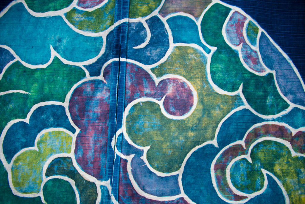 ~2020年制作 藍染ブラウス2016年制作 愛すべき夏に生まれるサークル 「翼を広げて高く飛べ」〜風は吹いているか〜 2020年の渦「暖簾」と「風呂敷」が染まる息苦しい「今」の空気を染めたくなった大きなエネルギーが渦巻いているきっと、「新しい時代」がはじまる汚染された「毒」はいつか「媚薬」となるのか?光と風を浴びて、希望の光を放て!